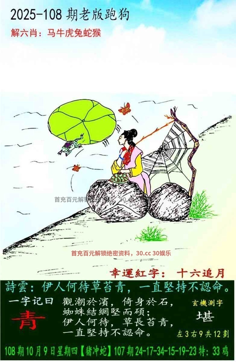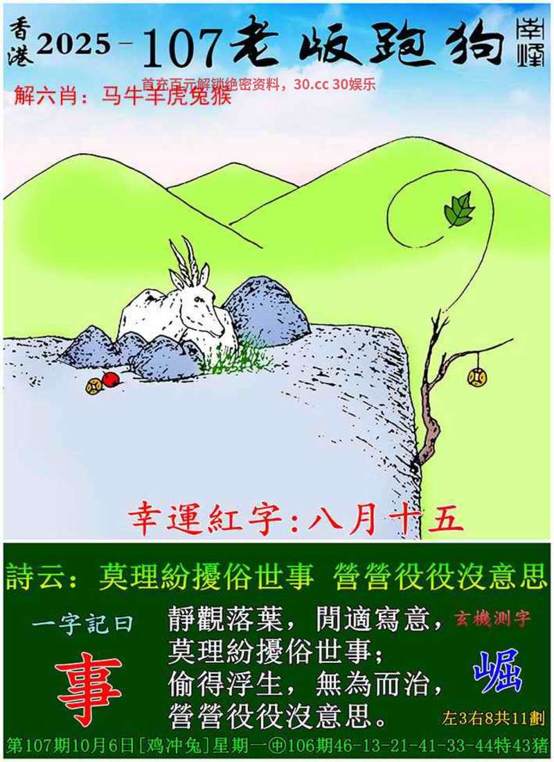 107期【独家玄机谜语】開:鸡33準! ≤洛阳城里见秋风,欲作家书意万重≥ 解:阳解阳肖鸡兔牛羊虎猴,秋解秋肖猴狗鸡,风解风肖虎龙兔 综合取肖:鸡兔牛羊虎猴 |